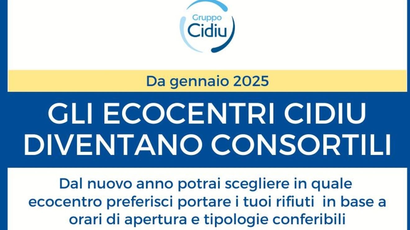 Per le modalità di accesso, i giorni e gli orari di apertura degli ecocentri consortili in vigore dal 2 gennaio 2025, consultare la pagina dedicata: www.cidiu.it/cidiu-spa/centri-consortili/