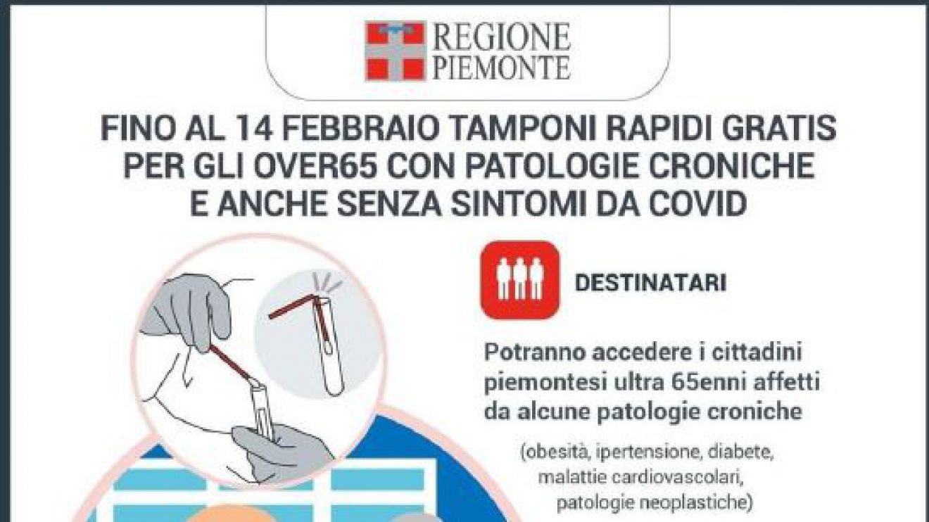 La Regione Piemonte ha attivato una campagna informativa per mettere a conoscenza i cittadini di tamponi gratuiti agli over 65, nelle scuole e su come prenotarli per i le persone che hanno riscontrato sintomi.