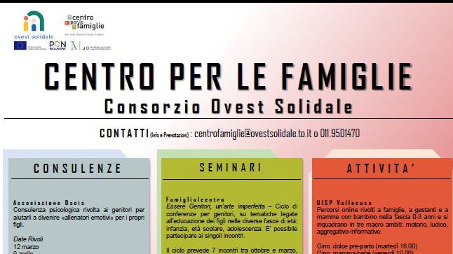 A Grugliasco proseguono le attività del Centro per Le Famiglie, presso la sede grugliaschese alla Città della Conciliazione, in via Prospero, 41: offerte mol...