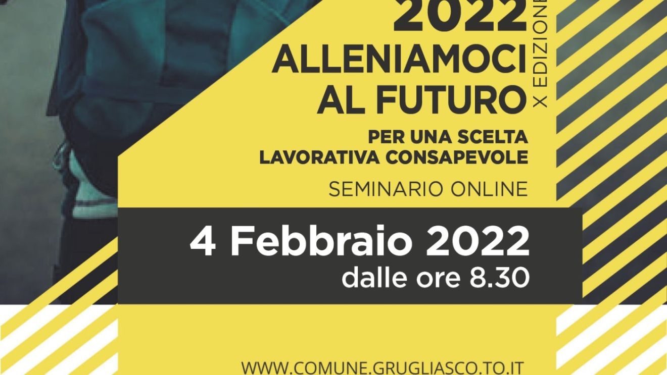 Al via anche quest'anno, la 10ª edizione del seminario di orientamento “Alleniamoci al futuro”, organizzato dall'Assessorato all'Istruzione del Comune di Grugliasco e rivolto agli studenti delle secondarie di secondo grado alle prese con la scelta dell'università e dell'ingresso nel mondo del lavoro. Un' edizione che si svolgerà anche quest'anno in modalità telematica, accessibile a partire dalle ore 9 di venerdì 4 febbraio 2022 e disponibile fino alla fine del mese di febbraio.