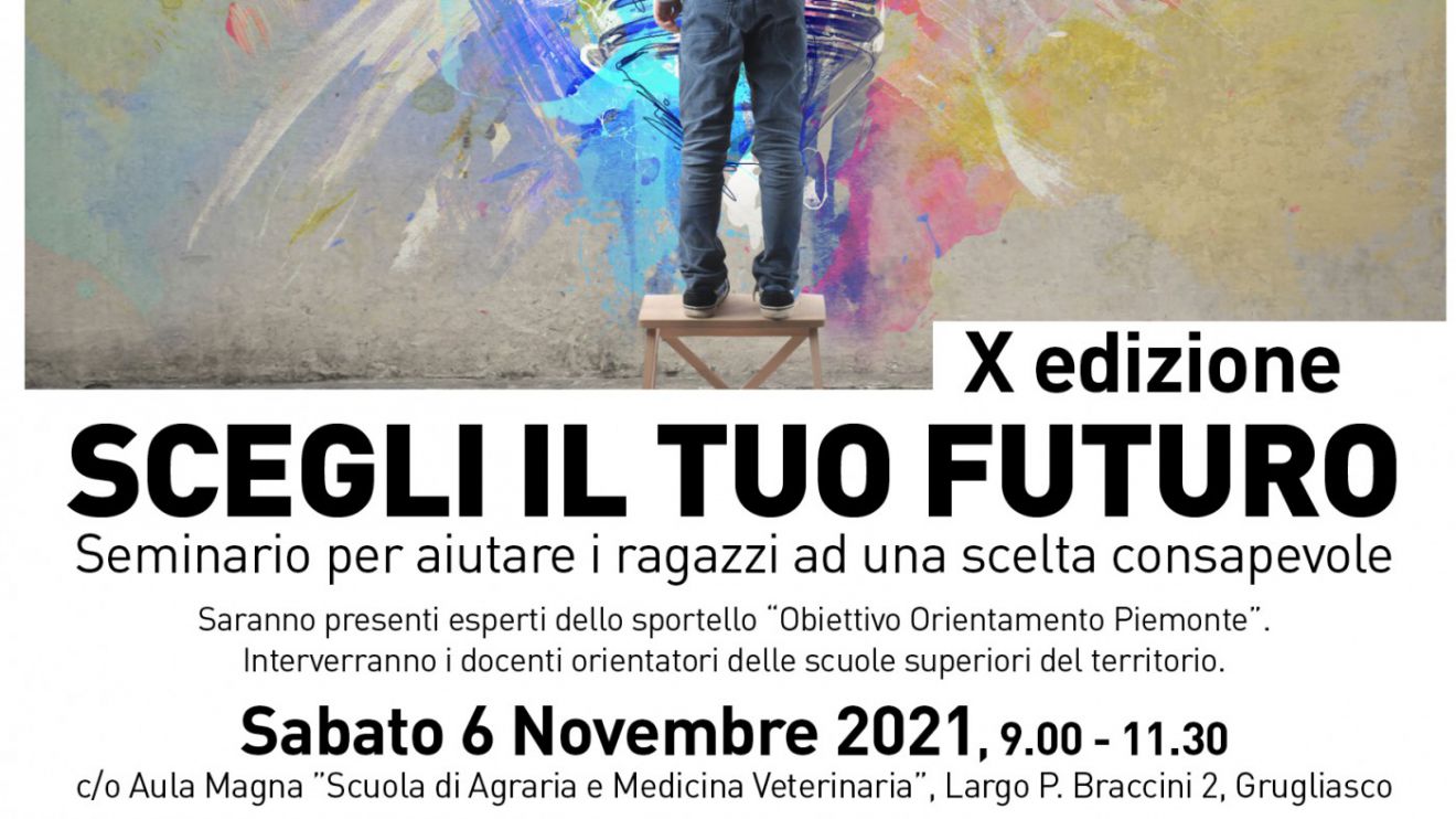 Sabato 6 novembre, dalle 9 alle 11,30, presso l'aula magna della Scuola di Agraria e Medicina Veterinaria” in largo Paolo Braccini 2, a Grugliasco, si è svolto il seminario di orientamento “Scegli il tuo futuro”, rivolto agli studenti e ai genitori dell'ultimo anno della scuola secondaria di 1° grado, in presenza