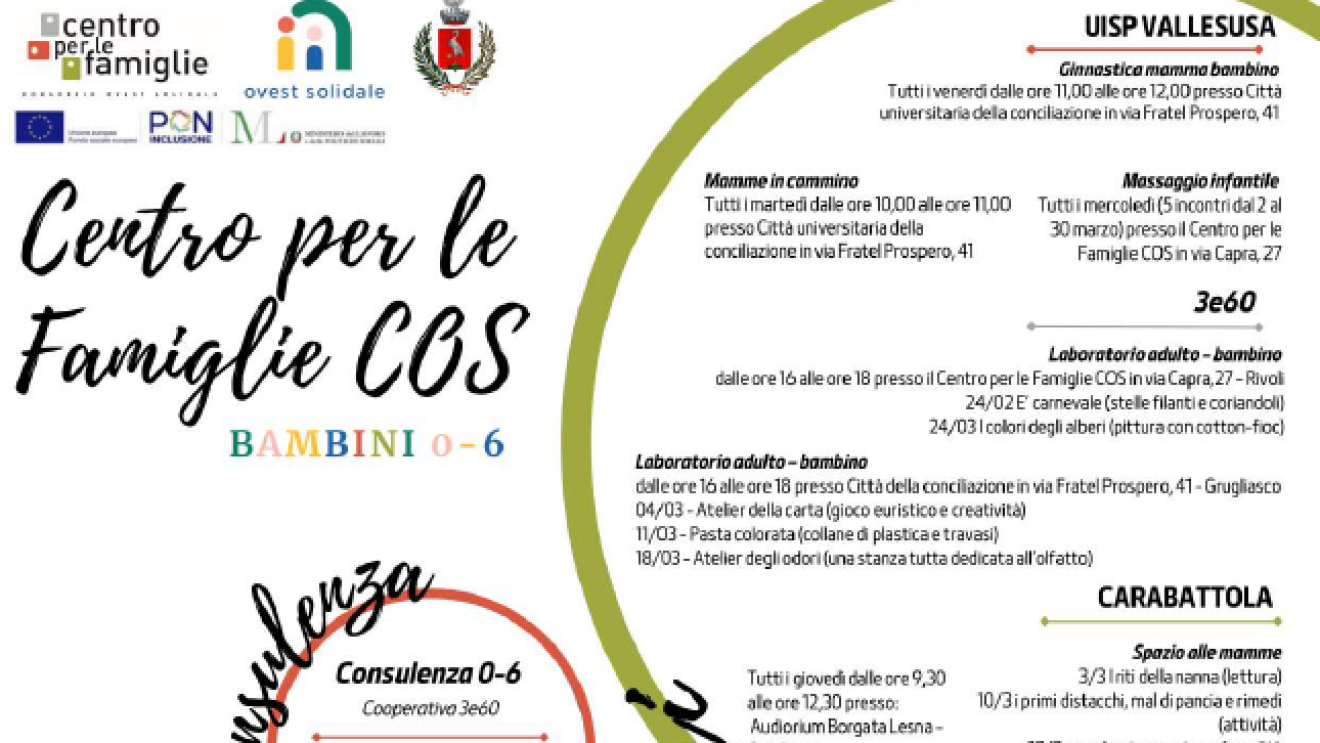 Il Centro per le Famiglie del Consorzio Ovest Solidale (COS) è nato nel 2010 e nei suoi primi 11 anni ha operato nei territori di Rivoli, Rosta e Villarbasse.