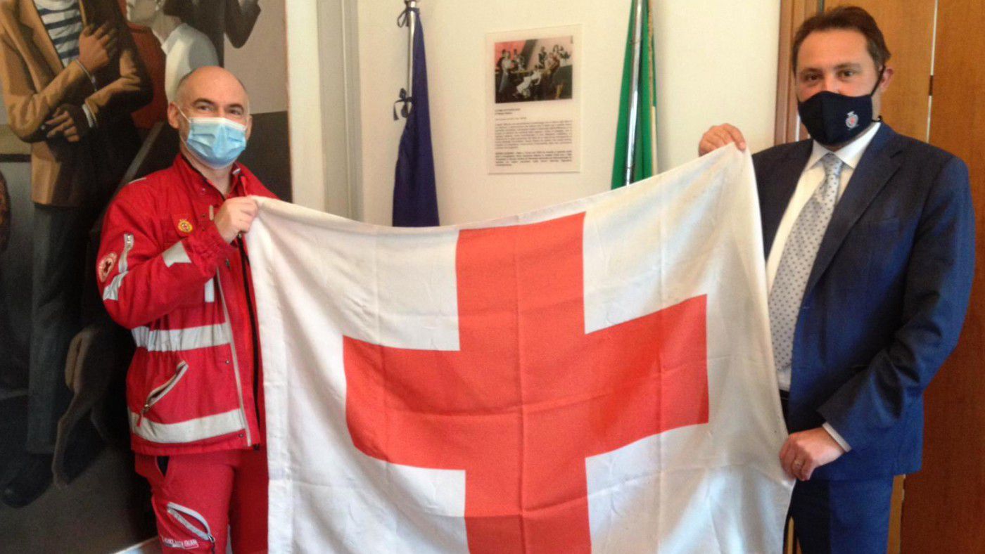 LA BANDIERA DELLA CROCE ROSSA ESPOSTA A GRUGLIASCO FINO AL 9 MAGGIO