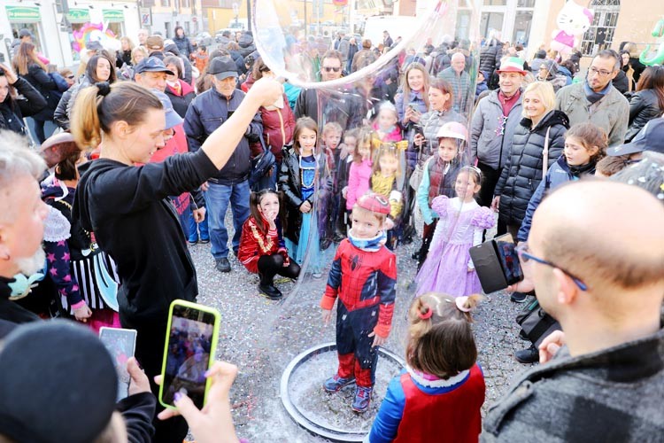 Dopo la sfilata, partita da piazza 66 Martiri e il percorso lungo via Lupo (nel tratto pedonale e successivamente in quello carraio), viale Echirolles (area mercatale), via Lanza, si è entrati nel parco culturale Le Serre con l'arrivo al padiglione espositivo “La Nave” alle 16.30, dove si è svotla la festa per bambini e adulti. All'interno de La Nave intermezzi musicali, esibizioni delle Majorettes e della Banda Musicale, performance circensi a cura dell'Associazione Blucinque, balli tradizionali, esibizioni dei gruppi storici e la distribuzione di bugie, caramelle e succhi di frutta offerti da Carrefour Market del centro commerciale Le Serre e di altre bugie donate dalla caffetteria e bistrot Re Bianco di via Lupo.