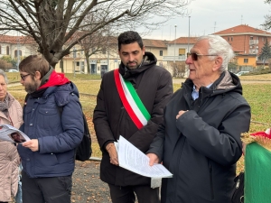 Dopo un omaggio dell'Amministrazione Comunale e dell'Anpi Grugliasco sez. “68 Martiri” alla pietra dedicata a Spartaco Bertoni in viale Gramsci 62/bis, alle ore 10, la cerimonia ufficiale è proseguita al parco Gino Marangoni in via Pawa 7.