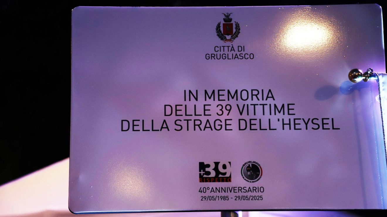 L’Amministrazione comunale di Grugliasco, F.C. Juventus, insieme allo Juventus Official fan club Grugliasco “Alessio Ferramosca & Riccardo Neri”, anche quest’anno, nei 40 anni dalla strage dell'Heysel, hanno celebrato e commemorato i 39 morti dalla tragedia di Bruxelles, giovedì 29 maggio 2025, alle 21, presso il giardino di via Galimberti 5, a Borgata San Giacomo, a Grugliasco.